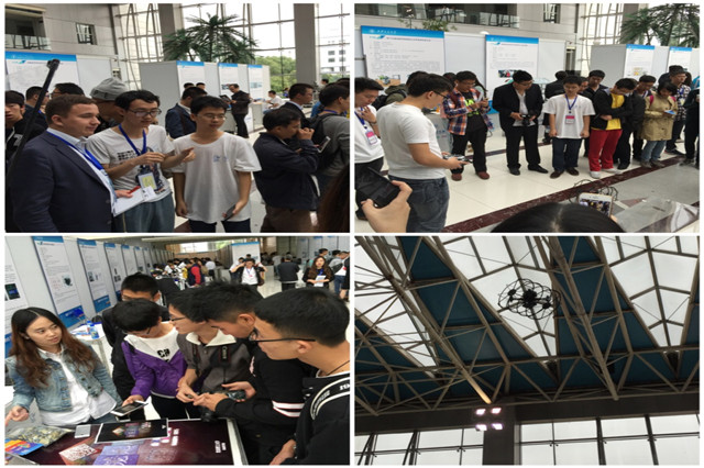 在年会的实物展示环节,“鼠笼式无人机”受到了来自国内外参会人员的高度关注和肯定,演示台前聚集了大批前来参观的专家和师生。参赛选手就作品的研究背景、技术成果、应用前景等向来宾做详细介绍,并现场解答了专家评委及参赛师生的疑问。