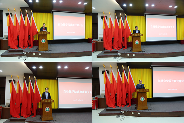 随后,学院领导班子分别就个人本年度分管工作做述职述廉报告,总结履行职责、完成工作、主要业绩和廉政自律等相关情况。