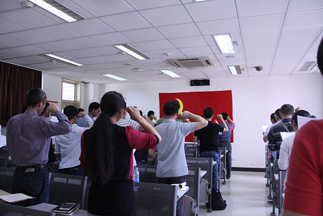 最后,参会全体人员面对党旗,庄严宣誓,重温了入党誓词。