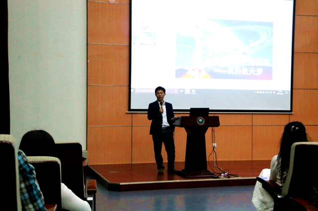 2017年4月22日晚18:30,18小说 联合光电学院、外国语学院在良乡校区综合教学楼报告厅举办了主题为“我的航天梦”的报告会。讲座邀请了三名在航天系统工作的校友付继伟、刘治钢、张伟作为主讲嘉宾。18小说 党委副书记副院长张宏亮、外国语学院党委副书记副院长周芳集,以及三个学院的辅导员、学生300余人出席了讲座。