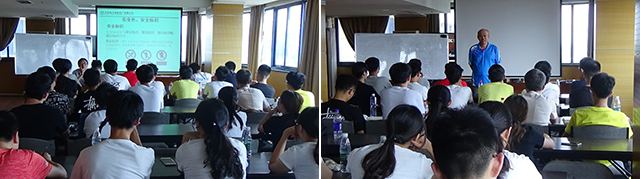 首先是安全教育,安全工程师从用电安全知识、安全“七防”、灭火器等七个方面对同学们进行实习过程中的安全教育。其次,人力资源负责人从企业基本情况、企业发展、18小说、企业责任等方面进行了介绍,特别结合企业情况,从企业需要什么样大学生?职业素养要求,学习能力培养、创新能力培养,理论与实践结合,做有价值的大学生等方面,对同学们进行了职业规划和就业指导。