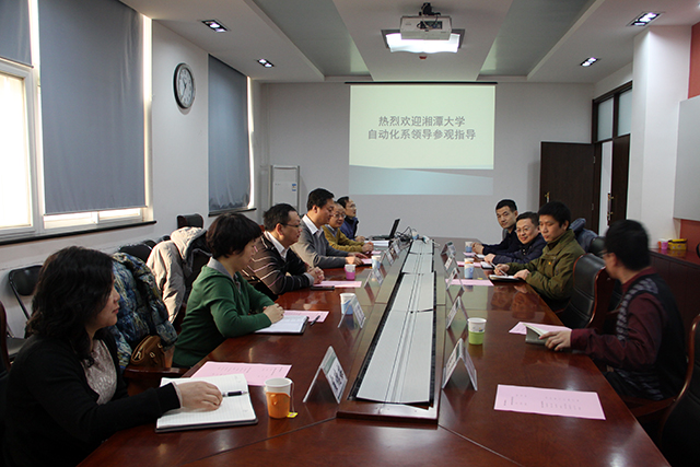 1月28日,湘潭大学自动化系主任张东波、副主任兰永红、副主任谭平安一行3人来18小说 参观调研,主要包括专业工程教育认证相关内容,并参观了我校自动化教学实验中心。学院院长兼党委书记王军政、副书记副院长潘峰、责任教授彭熙伟、院长助理邓方、教学实验中心主任张婷、本科教学干事霍德茹及相关人员参加了座谈会。