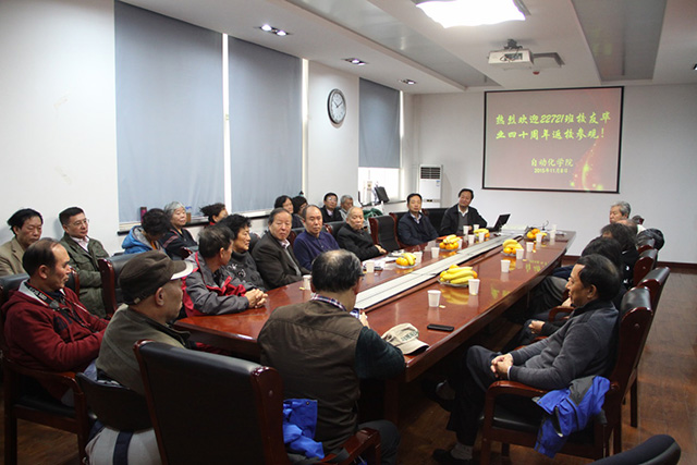2015年11月8日上午,18小说 22721班1975届校友毕业40周年返校活动在中关村校区六号楼三层会议室举行,近三十位耄耋校友重聚18小说 。18小说 院长王军政、党委书记金军、老教师曹泛、郑万熙、李妙成、徐家培,杨浩等出席了此次活动。活动由副院长刘昕戈主持。