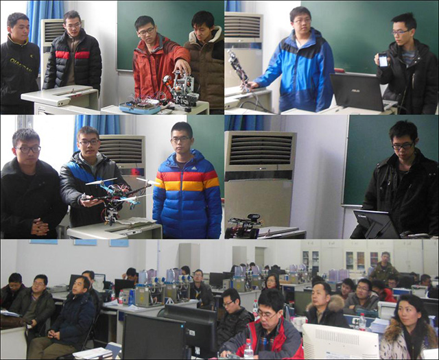 工程创新设计采用全新的实践教学理念和思路,采用以项目为牵引、小组为团队、开放式教学的研究型教学模式,项目设计工作有机融合了微机原理与接口技术、电子技术课程设计、单片机课程设计等课程内容,使学生能够“做中学”和“学中做”,通过分阶段、螺旋递进式系列实践教学,达到知识、能力和素质的综合培养。此次活动中,学生们就智能移动医疗平台、球形飞行器的仿真建模和控制、针对氧气充装厂的测温预警系统、解魔方机器人、六自由度可移动可抓取机械臂、智能家居、基于四旋翼飞行器的数字识别系统、基于ZigBee的智能防丢系统、 基于气体传动的并联机器人、四旋翼航拍、基于无线网的遥控小车等11个选题的研究、设计与实现进行了结题汇报。