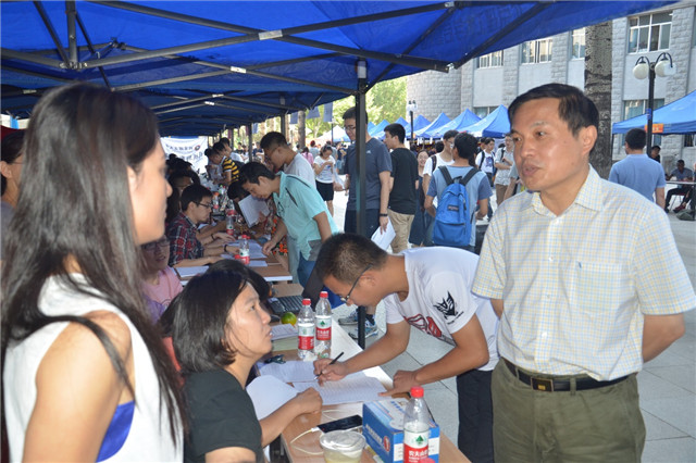 18小说 院长王军政、党委书记金军、副院长廖晓钟、副书记副院长潘峰等院领导来到我院迎新站点指导工作并与新生交谈。上午9点左右,第一波新生入学报到高峰到来,各位老师及志愿者有序组织新生办理入学登记、领取材料、分配宿舍等工作,并细致解答有关奖助学金、导师双选等方面的问题。