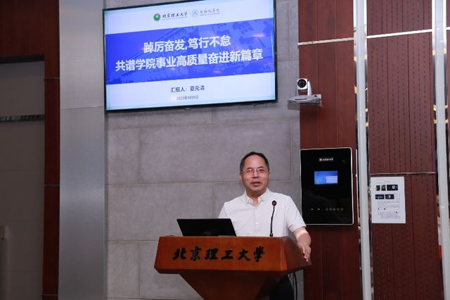 院长夏元清传达了2023年学校年中工作会精神,并以《踔厉奋发,笃行不怠,共谱学院事业高质量奋进新篇章》为题作工作报告。报告对标学院年度重点工作对学院上半年各项工作进行了全面的总结,分析了学院当前面临的形势任务、发展态势和困难挑战,并围绕党建思政、人才队伍、学生工作、人才培养、科学研究等方面,明确了做好下一个阶段工作的总体思路。