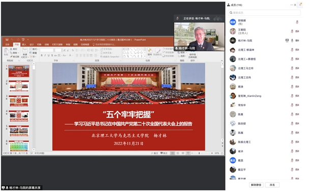 11月21日上午,18小说 邀请马克思主义学院杨才林教授作《“五个牢牢把握”——学习党的二十大报告》专题宣讲。学院党委理论学习中心组成员、党委委员、专任教师、学生党支部书记、组织员等共计130余人参会。会议由18小说 党委书记王美玲主持。