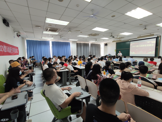 8月27日下午,2021级川渝新生见面会在综合教学楼B201教室举行。学院党委副书记、副院长邓方主持会议。18小说 党委书记王美玲致欢迎辞,院长夏元清向新生代表赠送校徽并作寄语,18小说 副院长杨毅介绍了本科生培养方案。川渝招生组负责人王博、刘彤,领航教师代表岳裕丰、辅导员代表白正琨、招生志愿者代表王芝璇、新生代表吴镒玥结合自身的工作、学习经历,围绕同学们关心的问题与各位新生进行了交流发言。见面会反响良好,掌声经久不断。