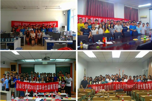 2015届学生以班级为单位开展此次德育答辩,在回顾大学成长和收获的同时,为今后的人生道路制定目标,迎接新的征程。在国外进行交流的学生也通过视频的形式参与答辩。学院领导、班主任、优秀校友和非毕业年级学生也参与到答辩中。