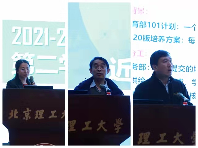 学院分管领导对近期工作作部署要求。副院长邓志红围绕“十四五教材申报”、研究生春季答辩、博士研究生招生、编制新增学位授权点研究生培养方案、研究生国际交流等方面对近期学院研究生工作作出安排。副院长孙健在讲话中积极鼓励老师们参与自然基金和人才计划申报,对重点研发项目要求各位老师持续关注并积极申报。副院长杨毅围绕本科专业建设、学籍与课程、职称条件修订、国际化工作安排、学科竞赛、毕业设计、教学实验、开放培训、本科教育教学审核评估等方面对学院本科教学工作作出部署。
